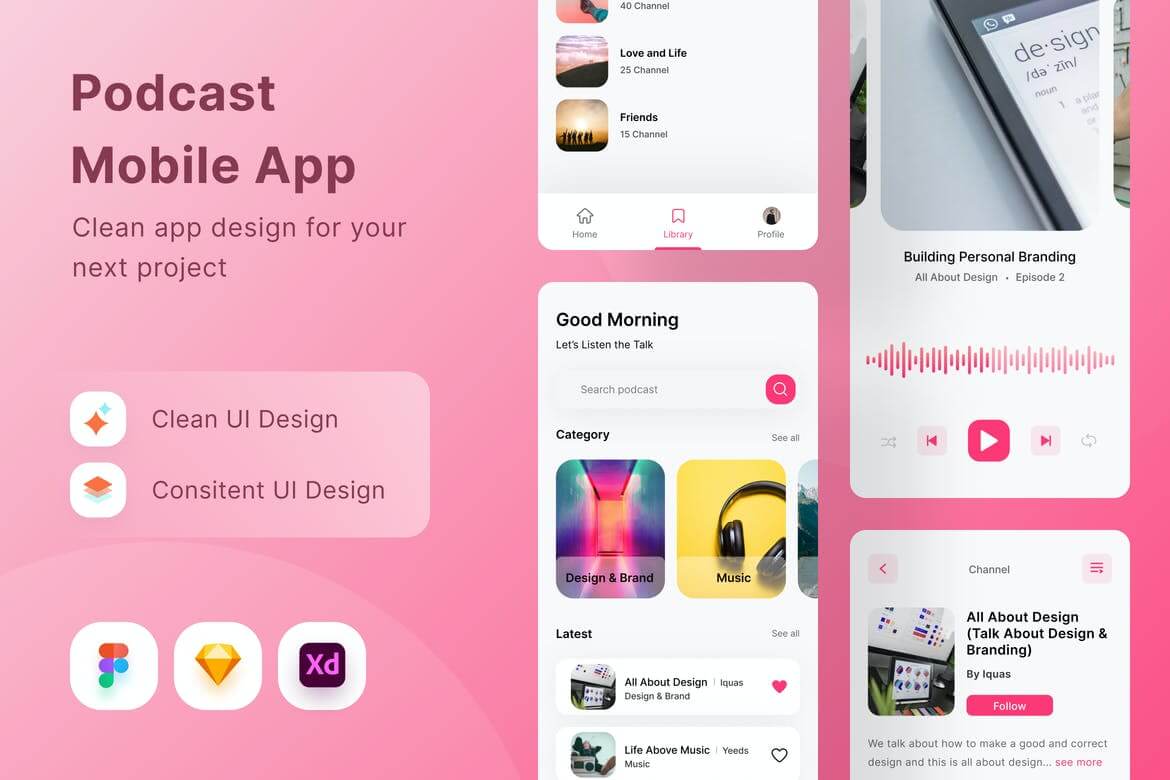 简约的播客app UI kit设计模板 Figma模板 1987 69 您好,这是我们的 UI/UX Kits 新产品,这款产品非常独特,设计独特。在此产品上,您将获得国际文件格式。 一套简约的podcast播客app UI kit设计模板,该模板设计干净、现代化,适用于IOS设备,提供Figma、Sketch和Adobe Xd格式的文件,您可以使用免费的字体,完全可定制,模板设计独特,整体色调风格简洁极具现代感,非常适用于播客app设计使用。 你得到什么? Adobe XD 素描应用 无花果 图标 图片不包括 谢谢 资源下载此资源仅限VIP下载,请先登录 下载价格:VIP专享此资源仅对VIP开放下载请先登录 podcast app ui kitui素材库ui设计素材下载播客app设计 版权:仅限学习交流,不可商用 收藏 0 分享到: