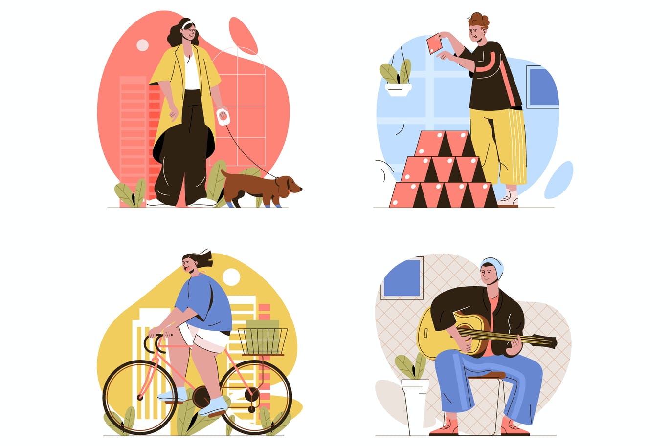 兴趣爱好插画 图形 2490 70 兴趣爱好概念场景插画。妇女遛狗或骑自行车。男人建造纸牌屋或学习弹吉他。人活动的集合。平面设计中字符的矢量图解。 ZIP 文件包括: 1 – EPS101 – AI1 – JPG1 – SVG1 – PDF4 – PNG 资源下载此资源仅限VIP下载,请先登录 下载价格:VIP专享此资源仅对VIP开放下载请先登录 APP手绘场景插画APP插画图片UI设计矢量插画兴趣爱好插画 版权:仅限学习交流,不可商用 收藏 0 分享到: